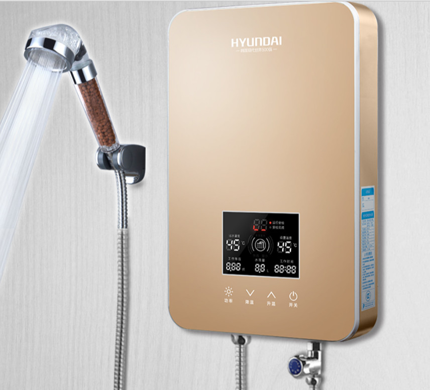 即熱式電熱水器與氣體即熱式構造原理相同,只不過供應能源各異,預留的火種改變為開啟供電的電源掣。開啟熱水供應系統龍頭,水壓改變,鼓膜產生變化凸起,推動撞針上升,觸及供電索掣而開啟發熱線,將流經發熱線喉管內的水加熱,由熱水供應龍頭輸出,由於電力發熱,所以不會造成廢氣污染。但發熱線則需耗較大電功率(18kw或以上),亦非舊式家庭電流所能負擔是故未能普及採用, 多見於新見樓宇。這種熱水器的好處是不需裝設煤氣喉, 體積細小易安裝。