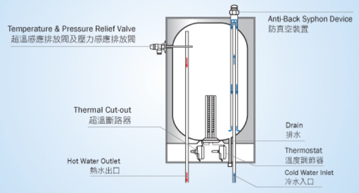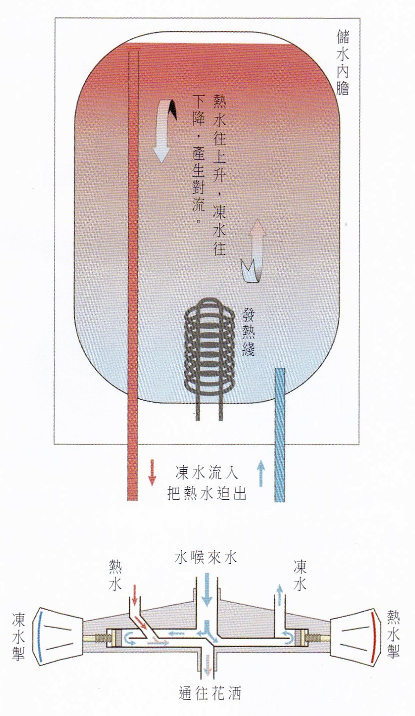 因此,這類熱水爐的出水口只能接駁花洒,萬萬不能接駁水龍頭,因為若水龍頭關閉時,受熱膨脹的水將沒有出路,水膽內壓力增加可能會引致爆炸,香港亦曾發生過這種爆炸意外,非常危險,切記!