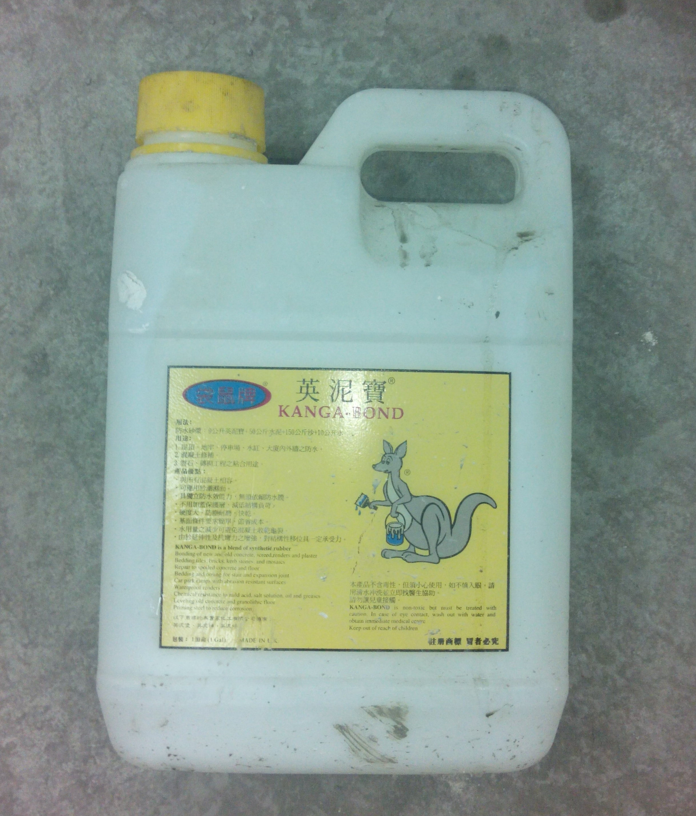 1份英泥開三份沙,用鏟撈勻,方法是將英泥粉置於沙面,用鐵鏟鏟起倒放在隔鄰地面,全部鏟完後再鏟回原位,如此鏟放三次即成,使用時才略加水撈勻成半乾濕狀。