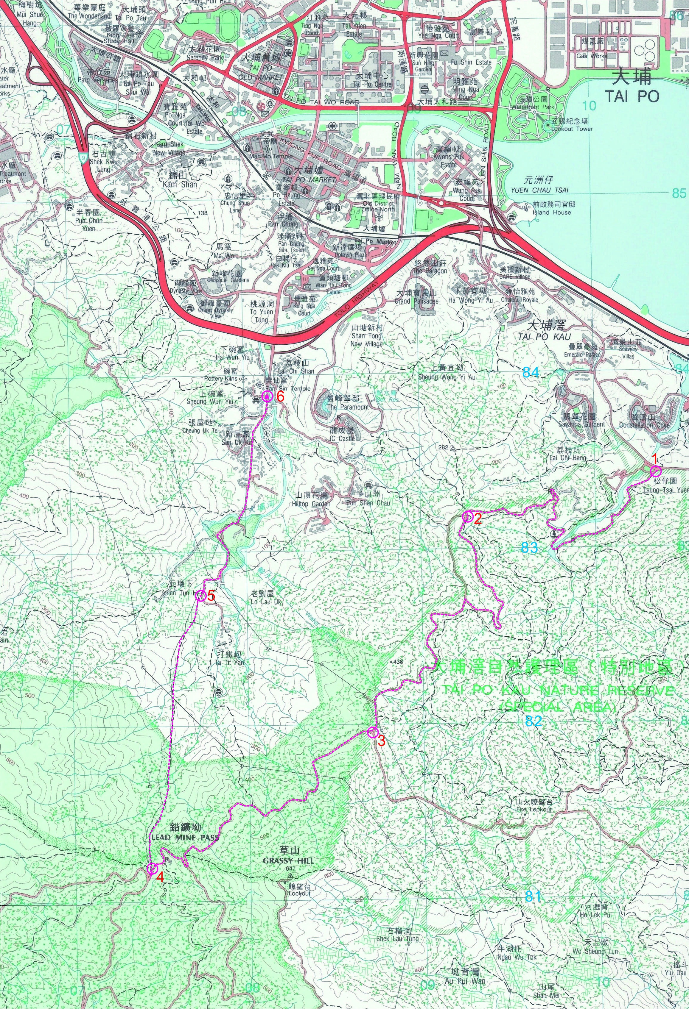 由松仔園經大埔滘自然護理區抵鉛鑛坳,再沿清幽山徑直下碗窰,參觀歷史古蹟-樊仙宮。路程頗長,大部分為車路, 易行,但限制的士及私家車駛入。 |