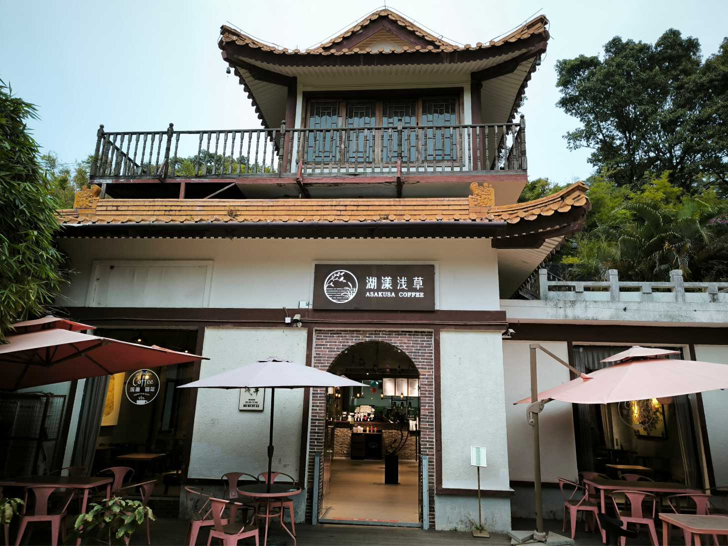 盆景園對落湖畔的咖啡廳湖漾淺草 |