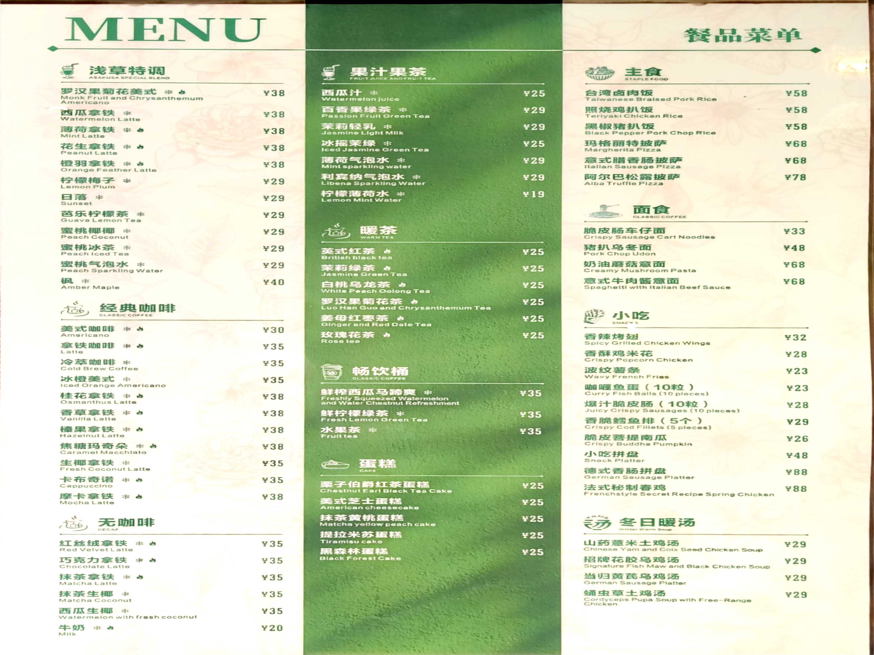 湖漾淺草餐單 |