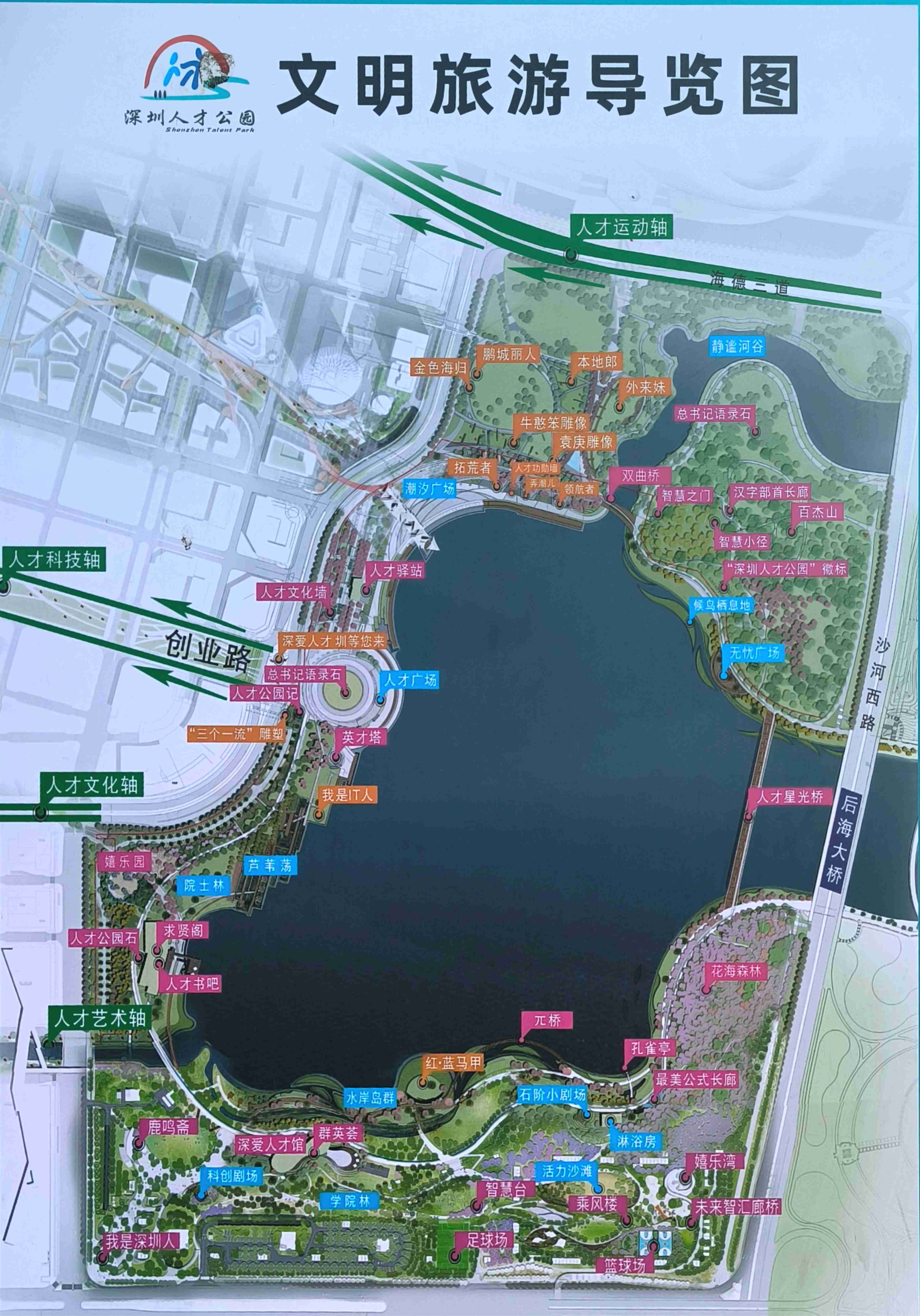 設有「院士林」、「百傑山」等景觀,彰顯深圳重視人才的城市精神。