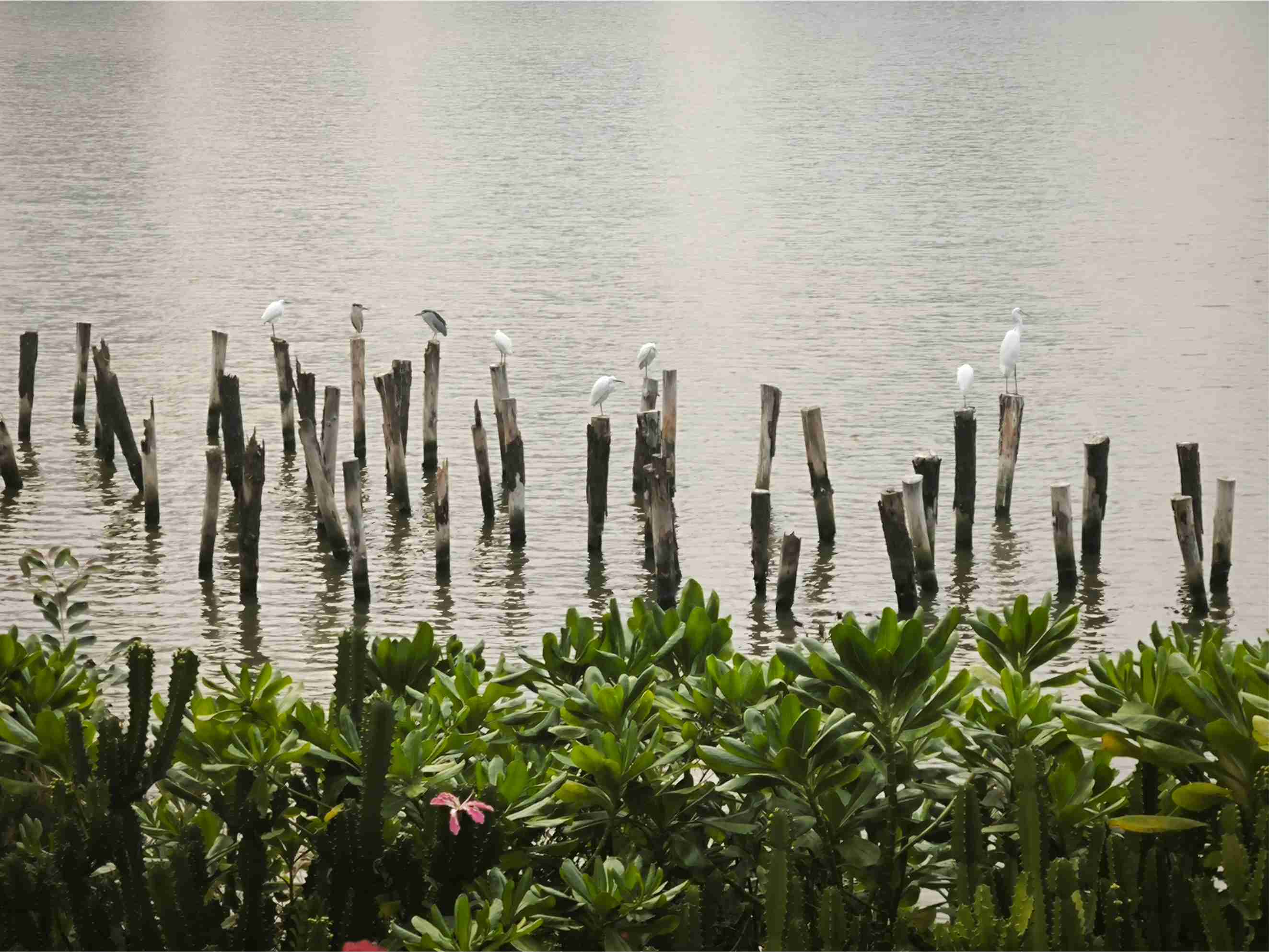 水鳥棲息樁是一處兼具生態保護與景觀功能的特色設施,專為吸引與保護濱海鳥類而設計,為鷺鳥、海鷗等水鳥提供安全的停歇與覓食空間。遠望湖面,樁體如同點綴其間的「小島」,鳥群停歇其上,與湖光山色相映成趣。清晨與黃昏時分,常見鷺鳥成群聚集,是攝影愛好者的熱門取景點。