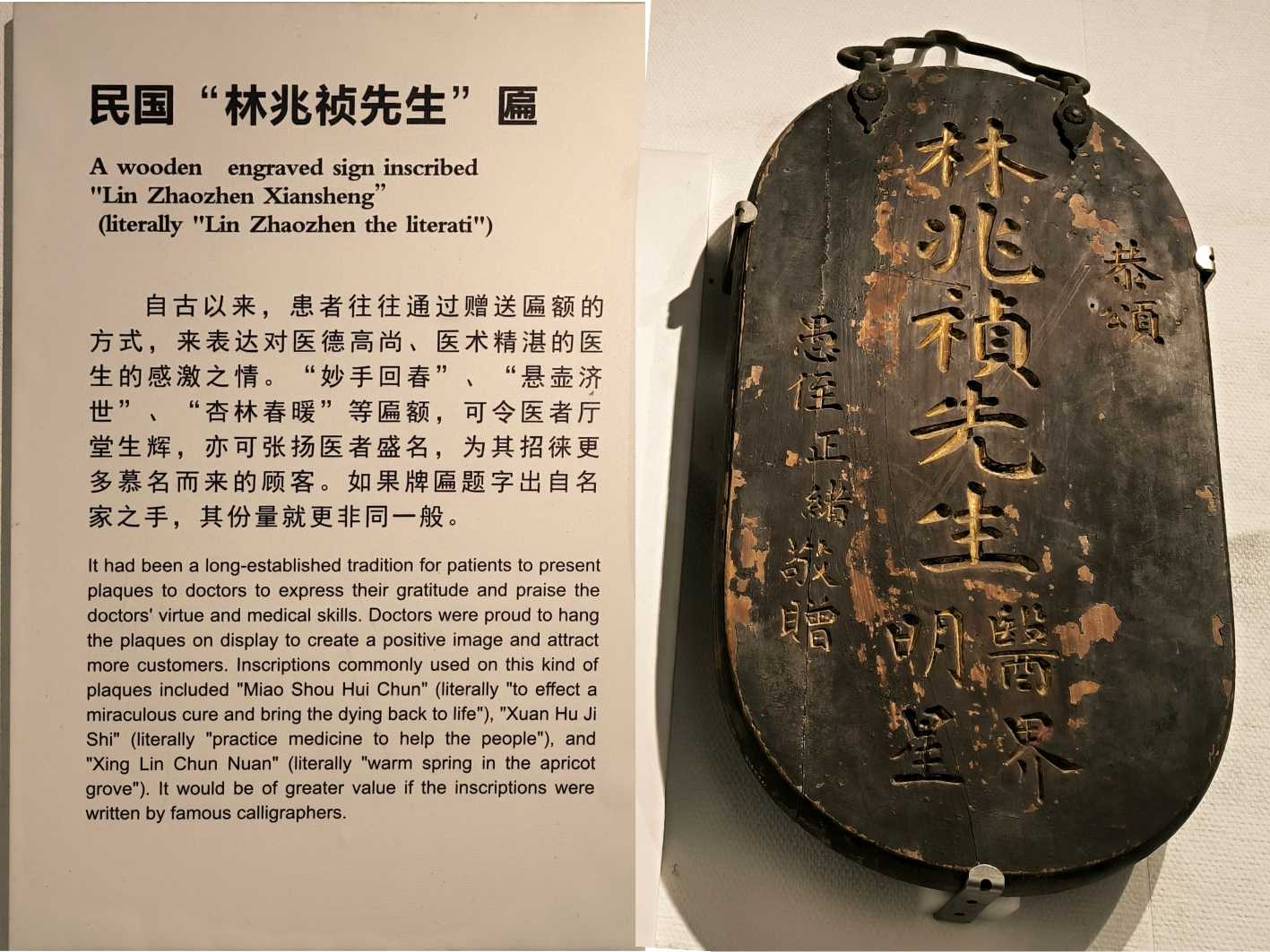從前的木刻醫生牌匾 |