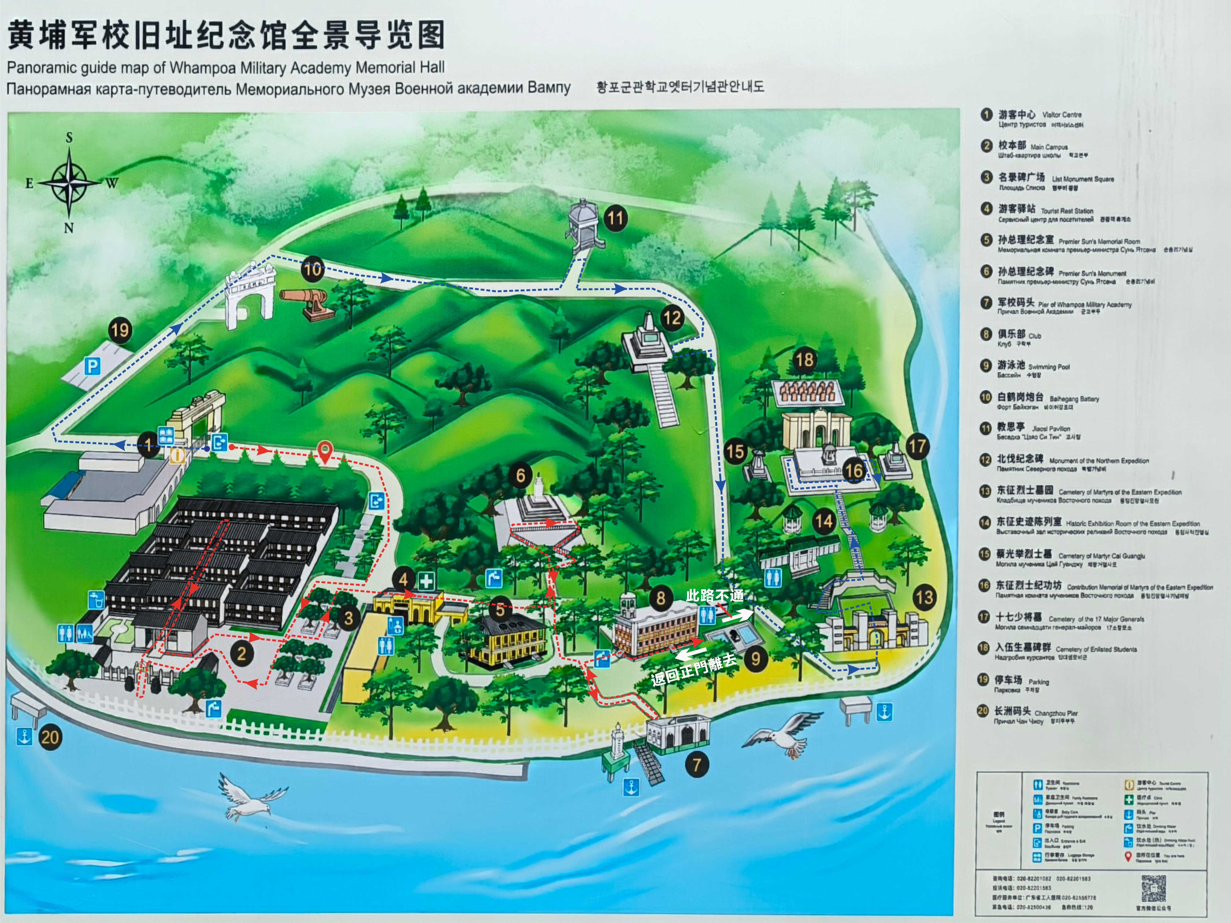黃埔軍校導覽圖 先依圖中紅色虛線進園參觀1-9號景點 |