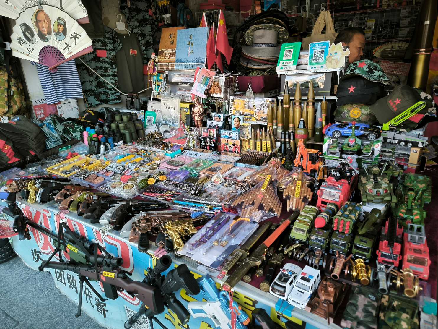 沿途有好多售賣軍事玩具的商店 |