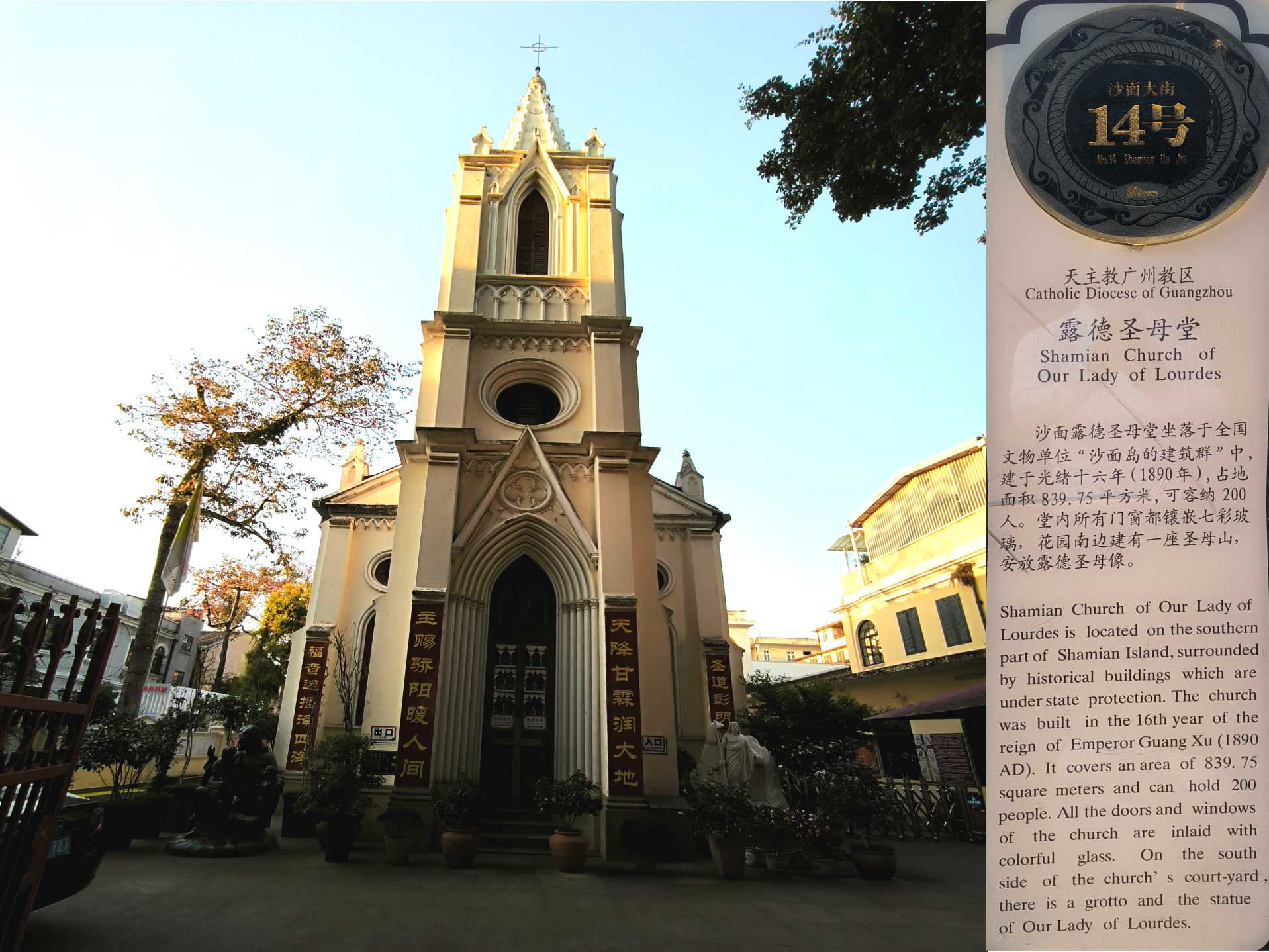歷史背景:1861年起成為英法租界,西部由英國佔領,東部由法國佔領。此後百年間,沙面成為外國領事館、銀行、洋行的集中地。