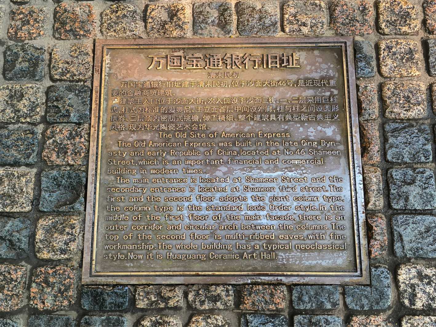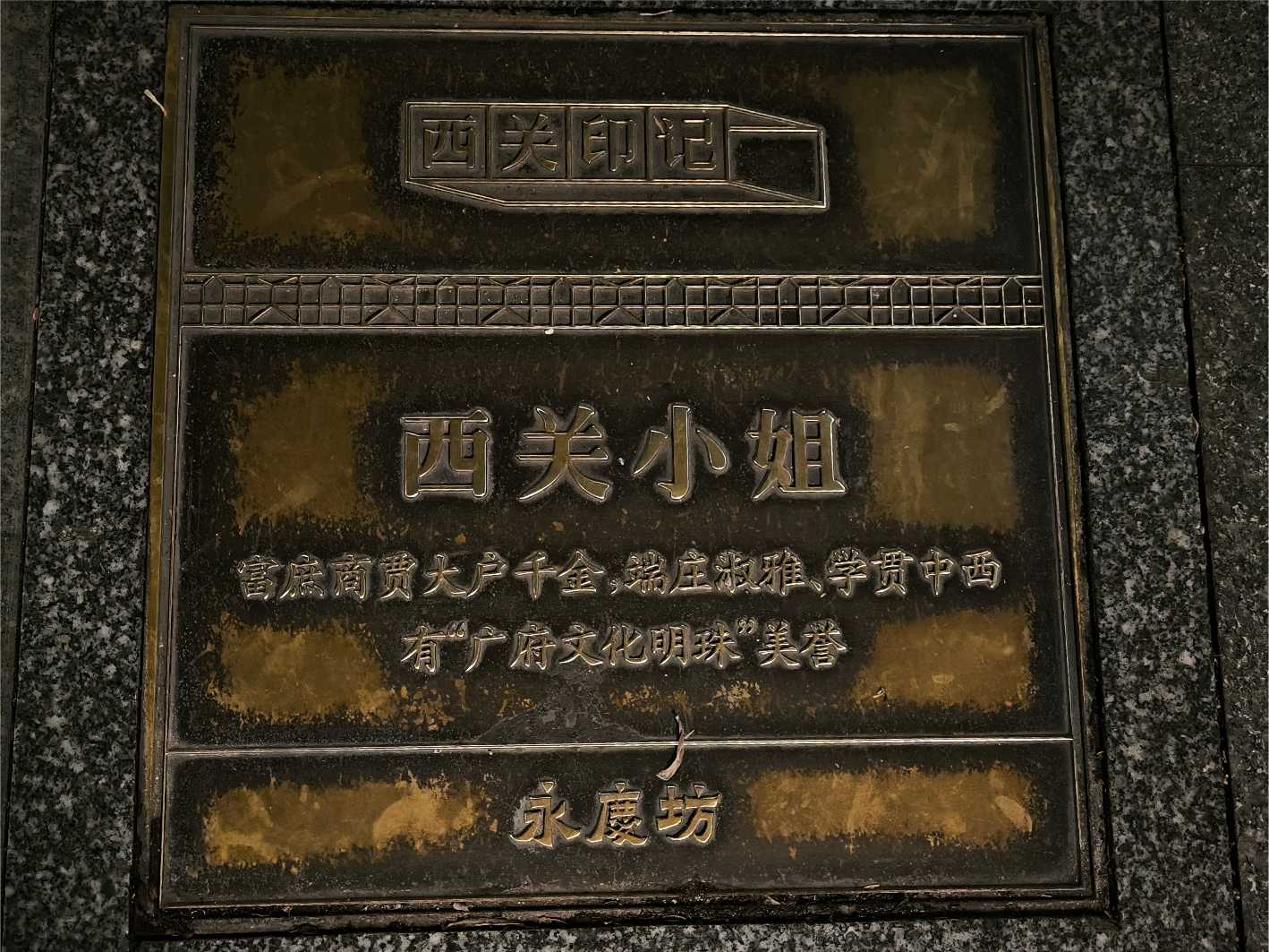 行人道上有好多介紹廣州事物的銅牌 |