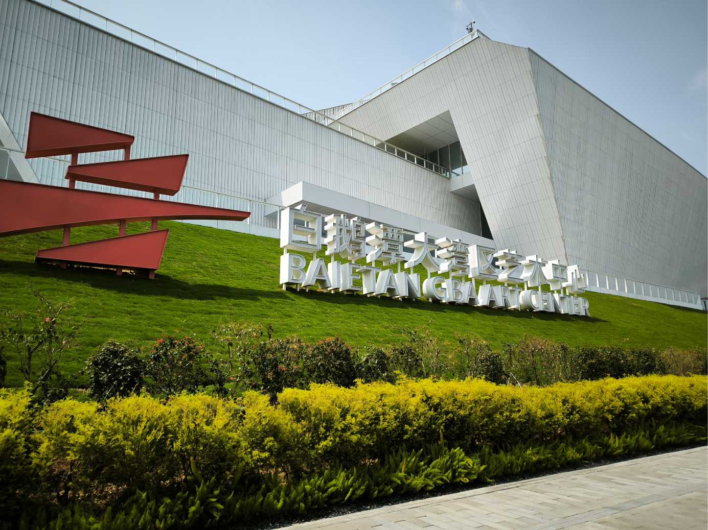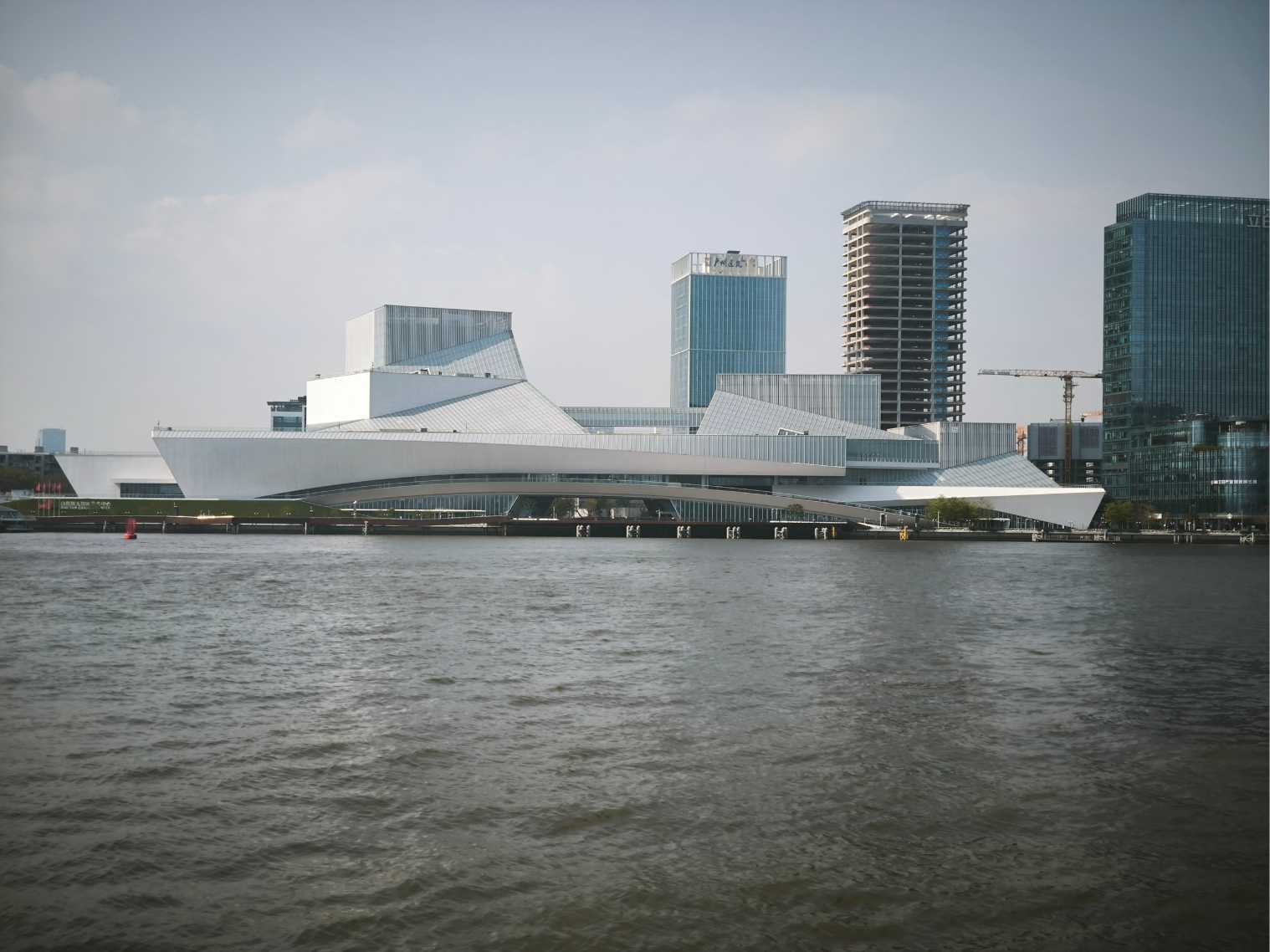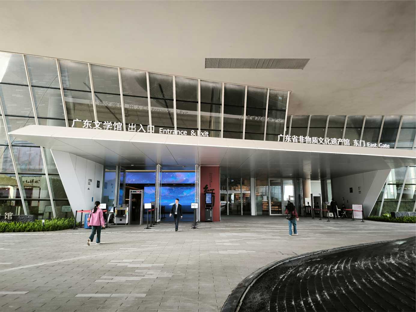 廣州荔灣區白鵝潭大灣區藝術中心是由三館組成,分別名為非物質文化遺產館、美術館和文學館,
