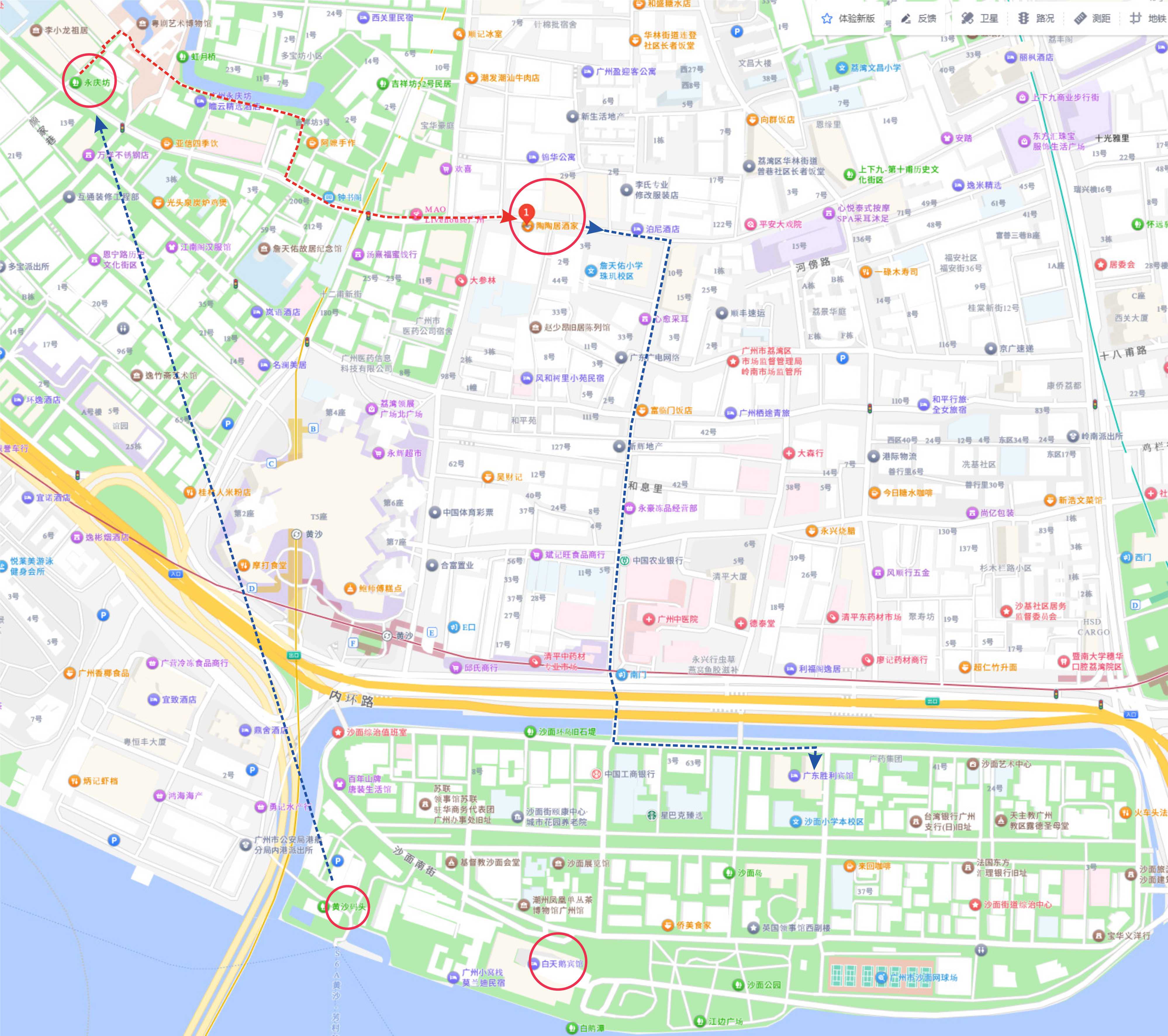 建議在黃沙碼頭或白天鵝賓館打車前往永慶坊(省時間)
