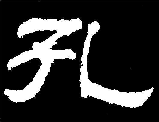 6. 折畫在右下方。[孔子]的[孔]字的折畫在右下方,係兩筆寫成,斷而相連。[鮑叠]的[鮑]字的折畫在右下方,係一筆換向寫成。 右下角的折畫,兩筆寫成的比較容易掌握,但要注意對接處的圓合。一筆換向寫成的不太好掌握,其孤度做到恰到好處有一定難度,也極容易出現[鋒腰]或[鶴膝]之類的筆病。 |