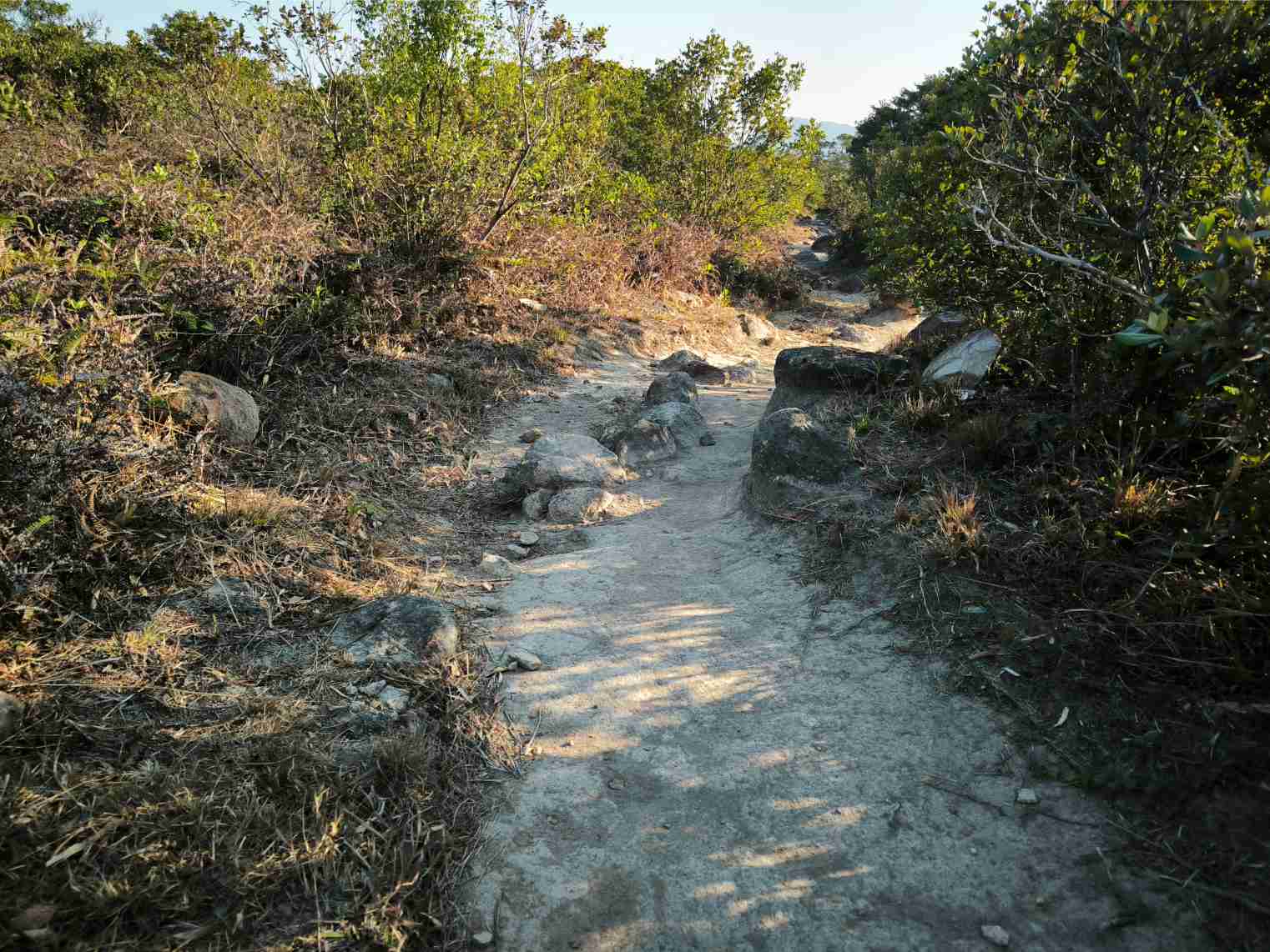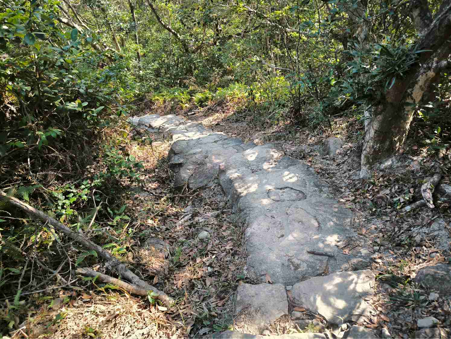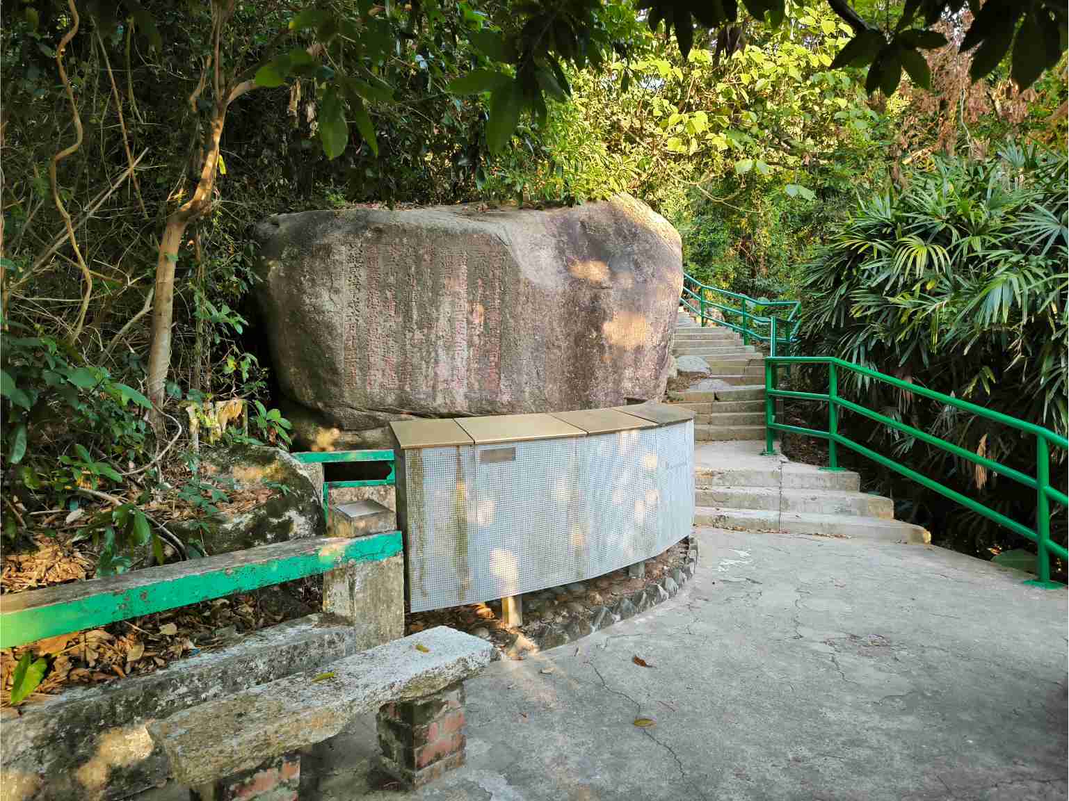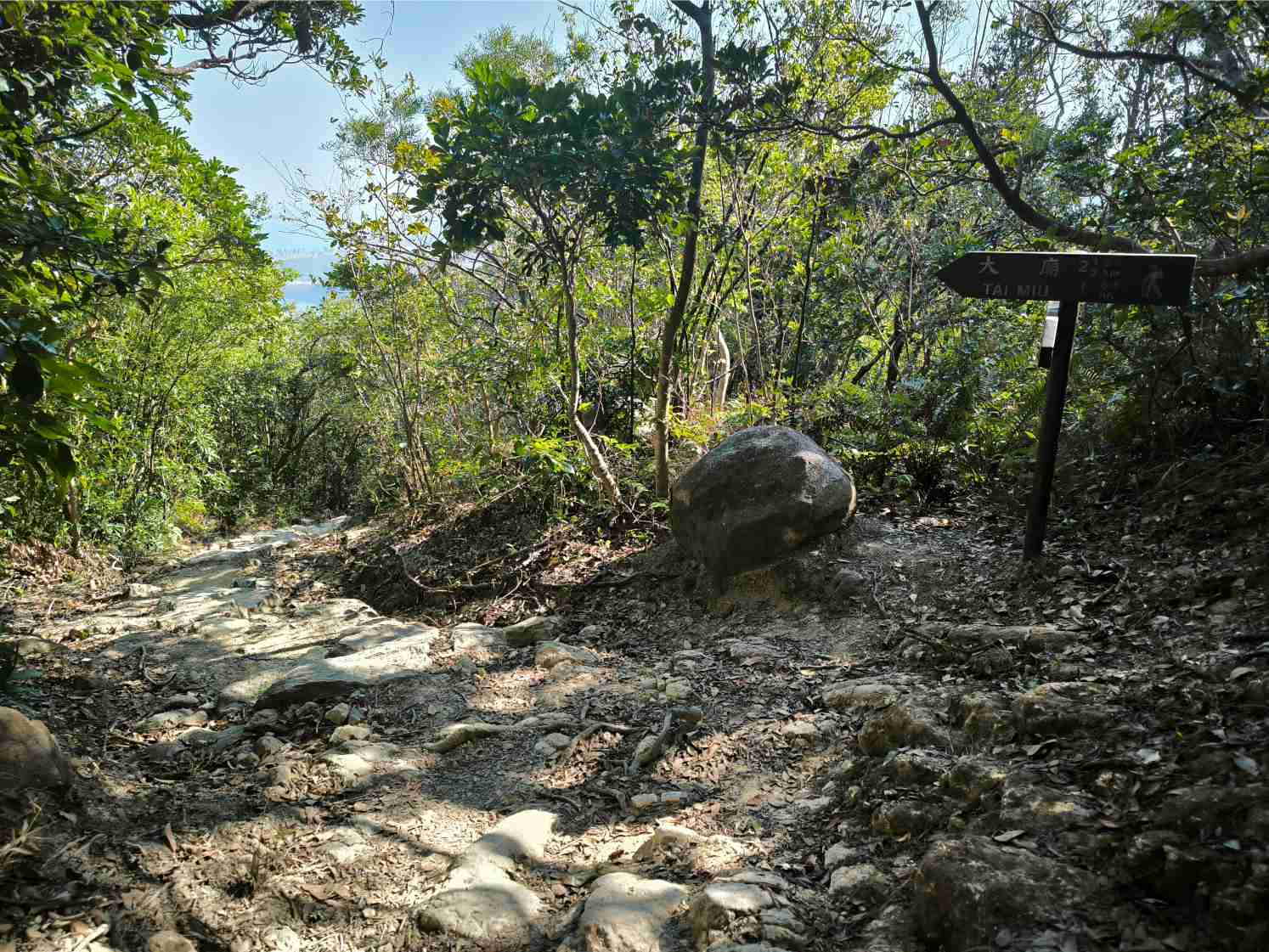 沿大坳門緩登釣魚翁,再沿郊遊徑攀海拔273米的田下山,細賞佛堂門地勢和東龍島古蹟地貌,再觀「大廟」及「大廟灣刻石」。沿途有上下坡段,釣魚翁郊遊徑頗為崎嶇。 |