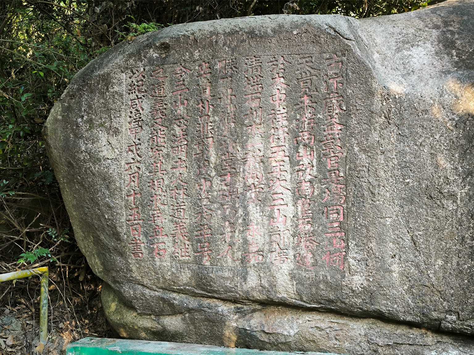 大廟灣刻石於1955年由一名叫余謙的建築師發現。石刻長約10呎、高約5呎,厚約5吋,刻有108字,分為9行,每行12字。