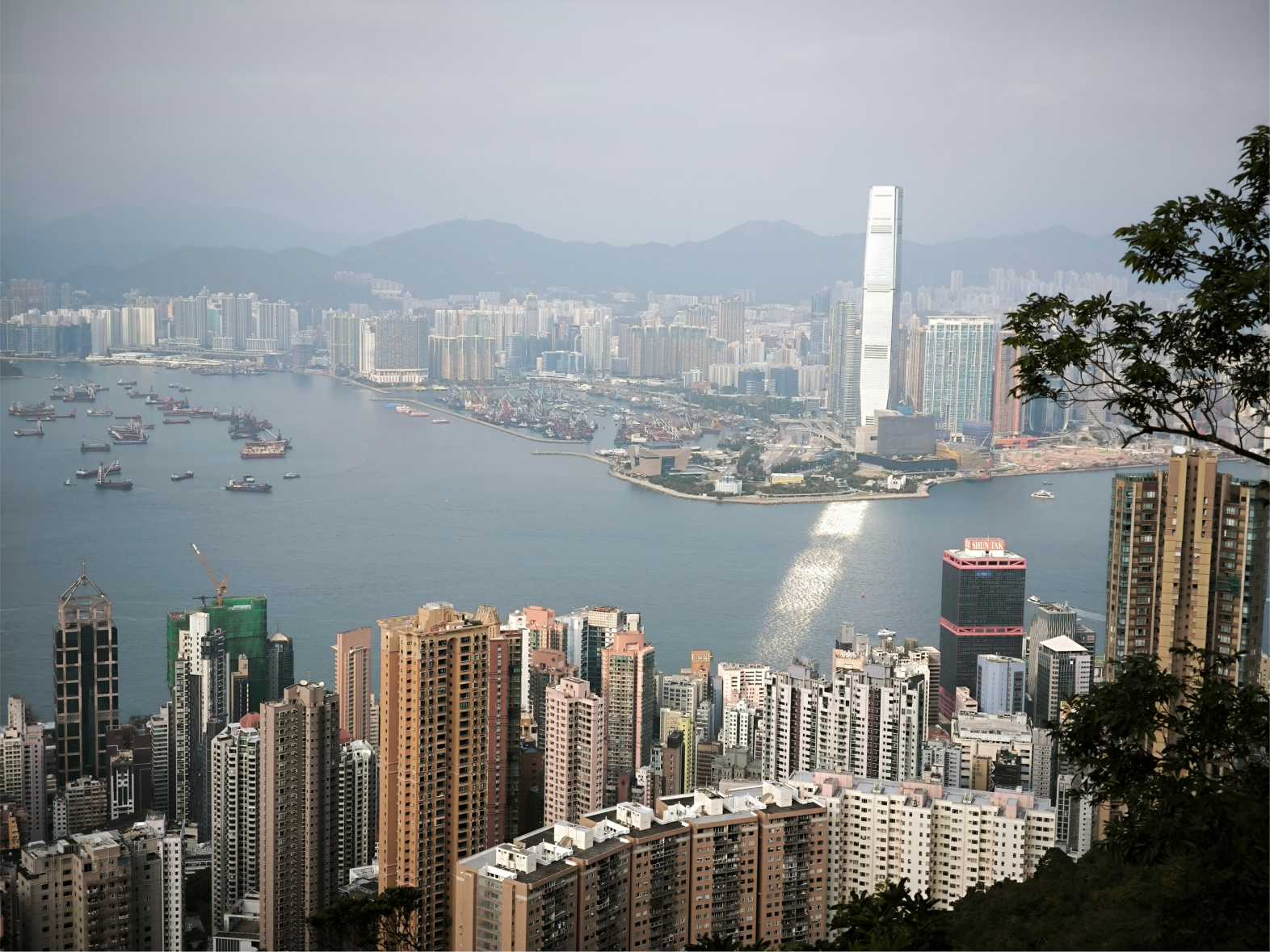 下望維多利亞港(罕見的環球貿易廣場倒影) |