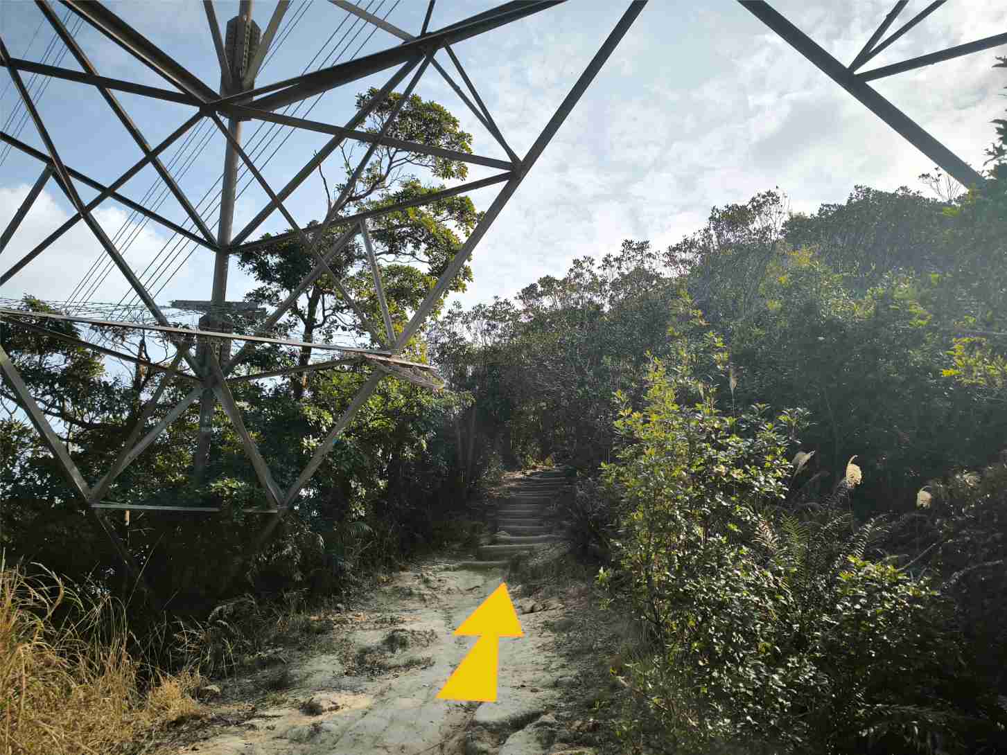 穿過輸電網電塔底部 |