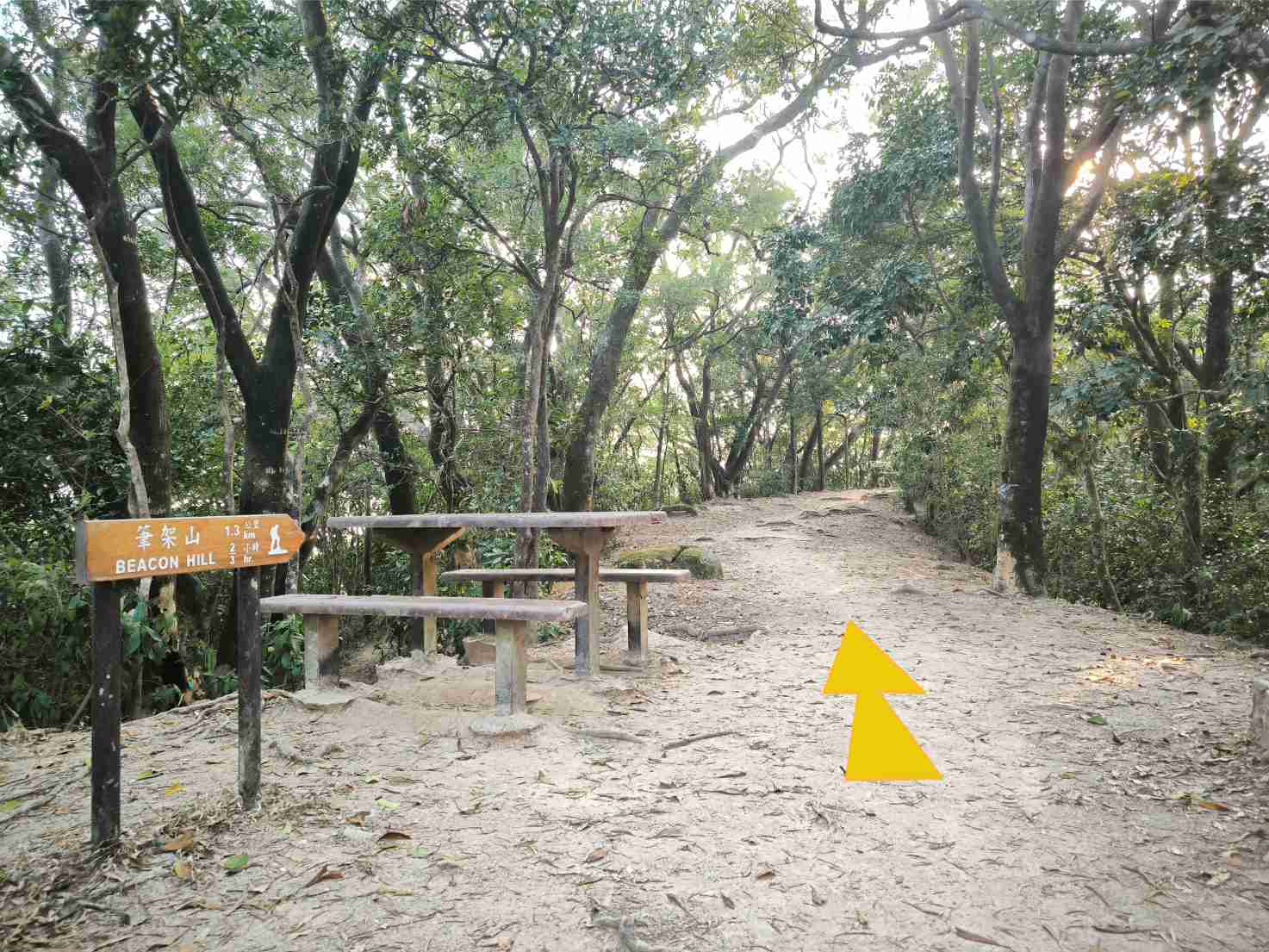 穿過涼亭向筆架山方向前進 |