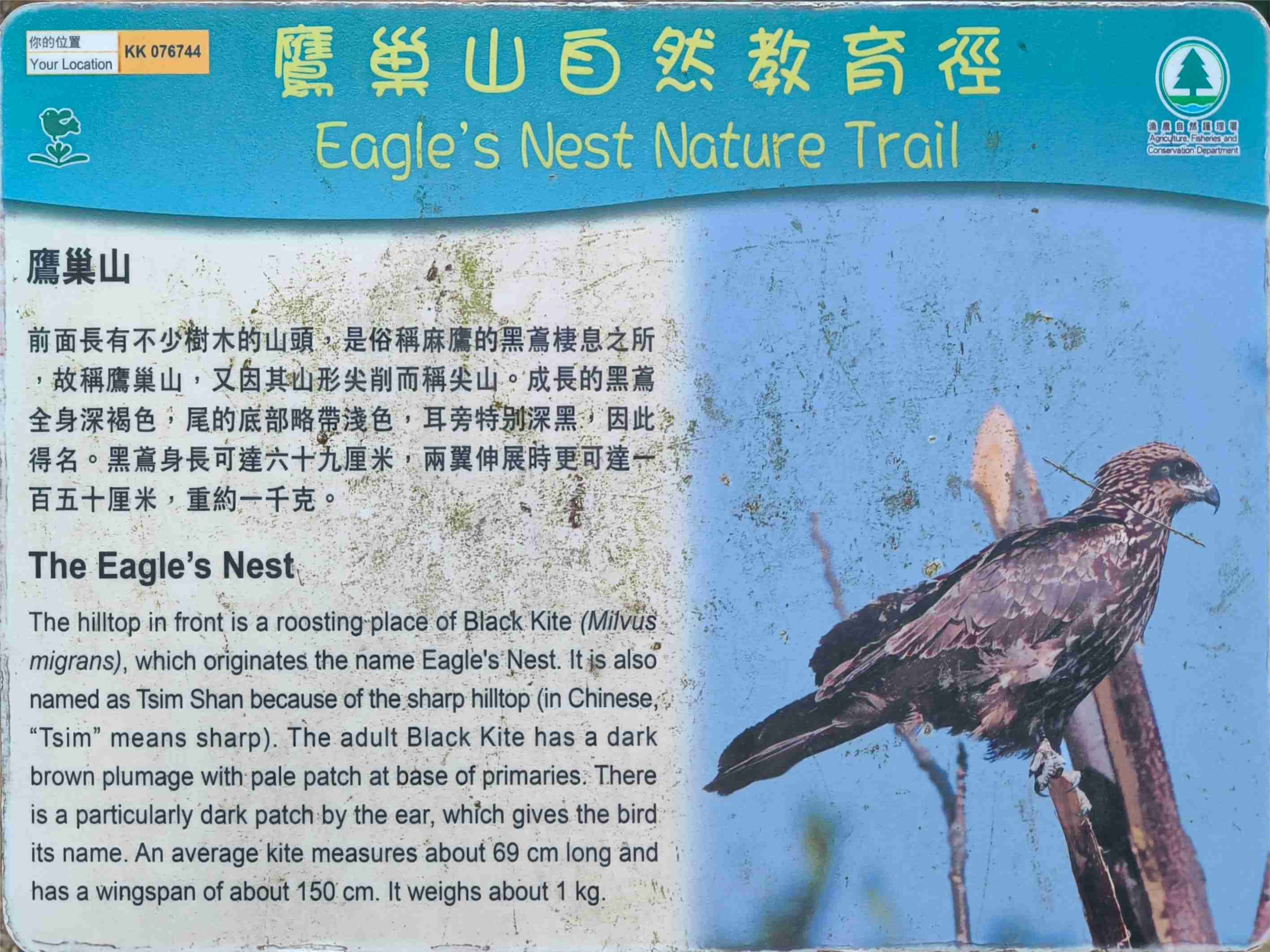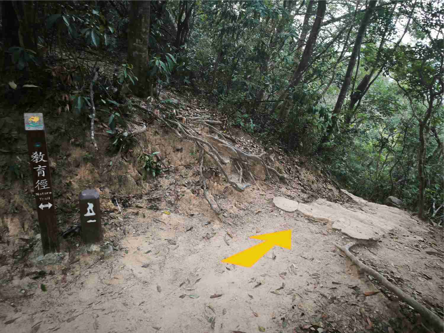 鷹巢山自然教育徑路口轉右下行 |